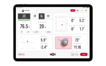 PITCHING 2.0は、球速、回転数、回転軸、回転効率、縦と横の変化量、リリースポイントの位置・角度などさまざまなデータの計測が可能です。